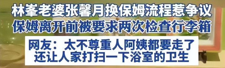 就在大家讨论得热火朝天的时候,林峰主动提起了另一个事儿。他老婆张馨月前阵子直播时检查保姆行李的片段,在网上闹得沸沸扬扬。要说这事儿也挺有意思,保姆都要走了,张馨月非要再检查一遍箱子,完了还让人家折回来打扫卫生间。网友炸了锅,说什么的都有,有说她欺负人的,也有说这是正常流程。